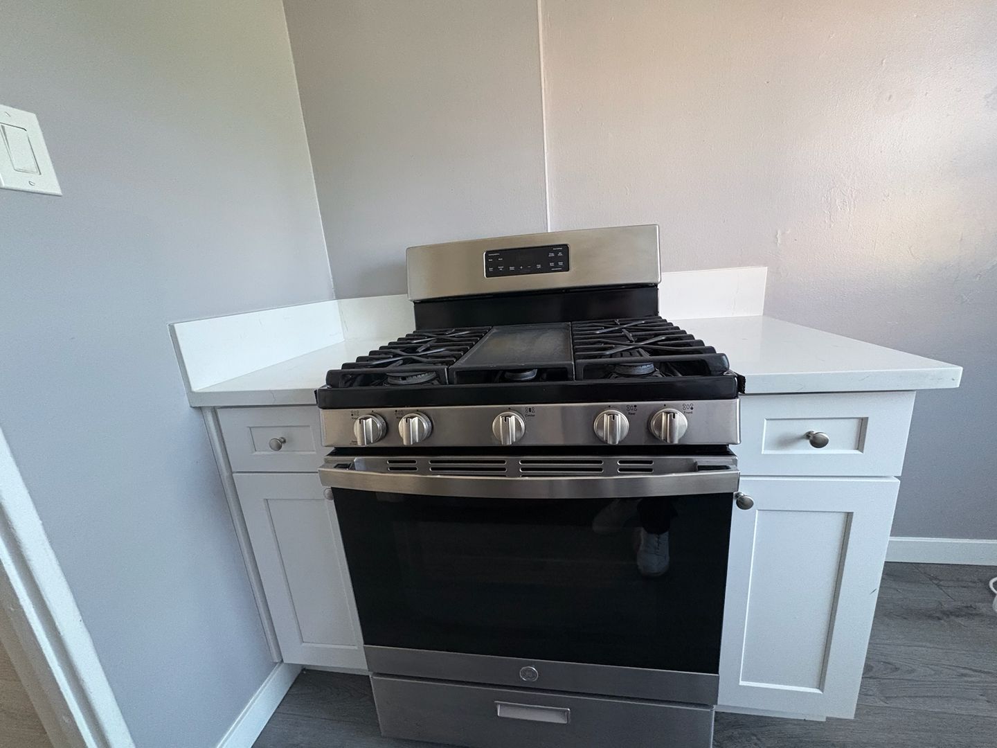 - Sleek new cabinets and countertops